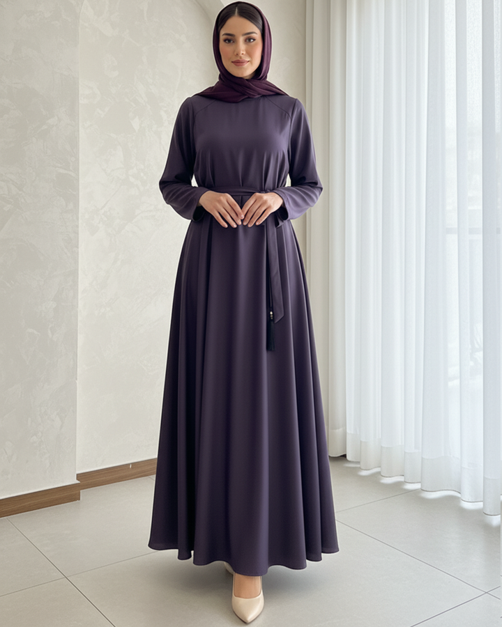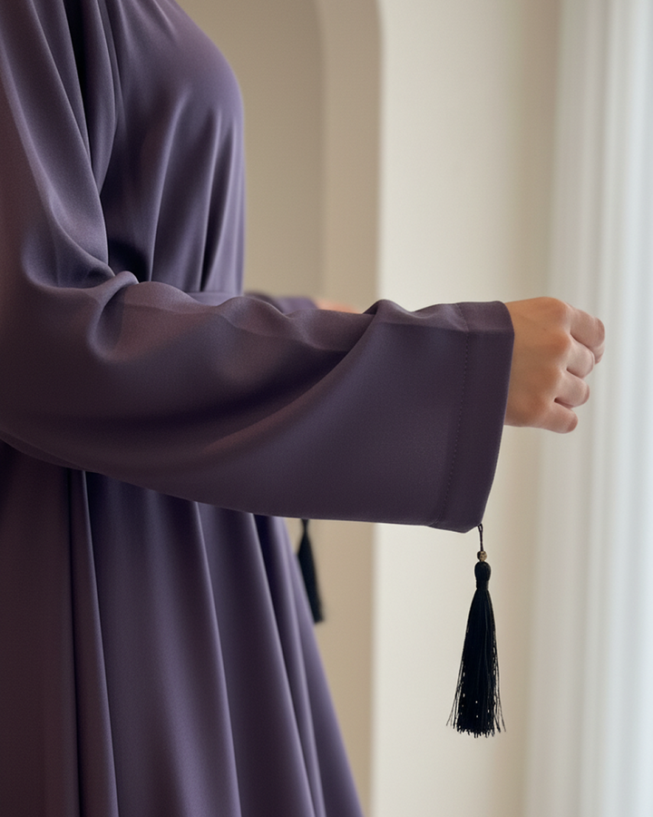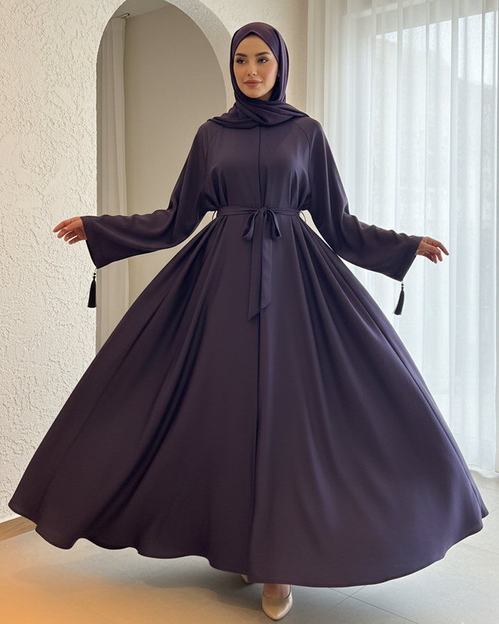 Deep Plum Nida Umbrella Style Abaya with Tassels & Belt – Size 54