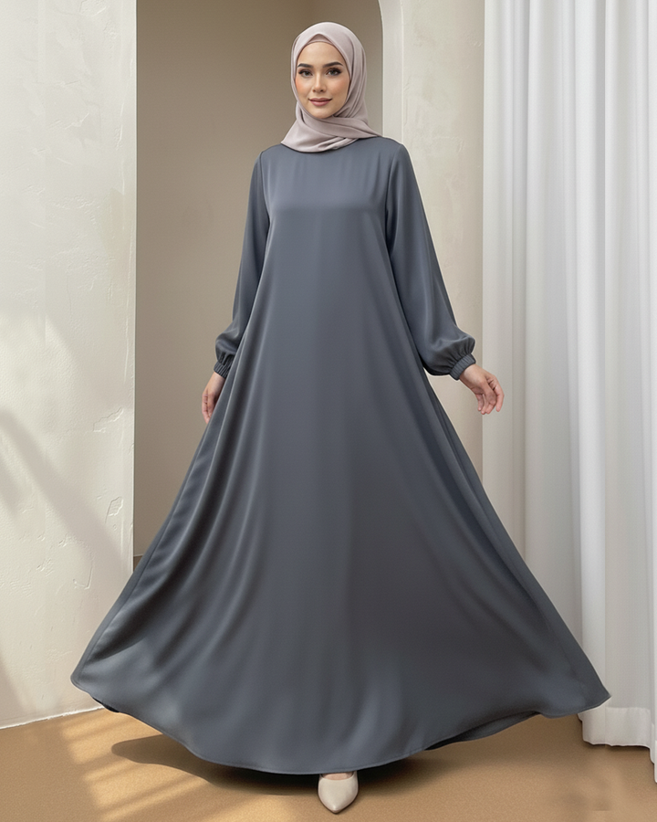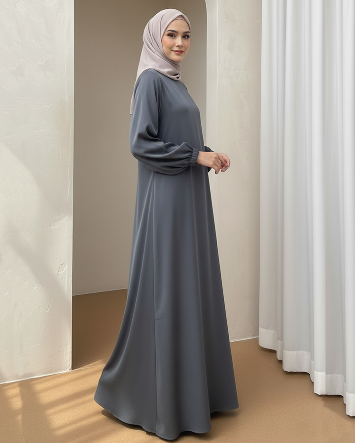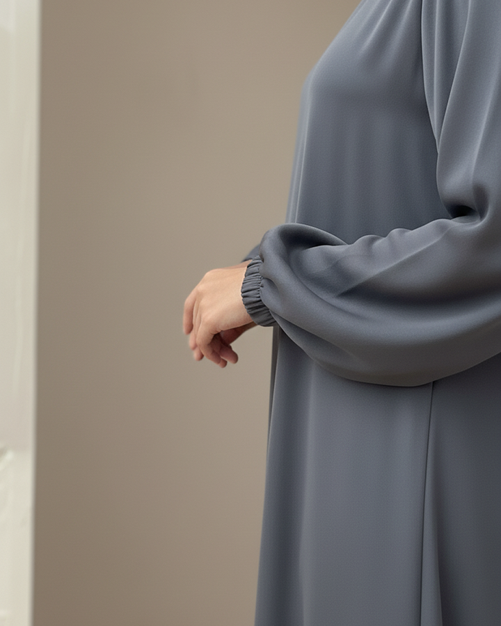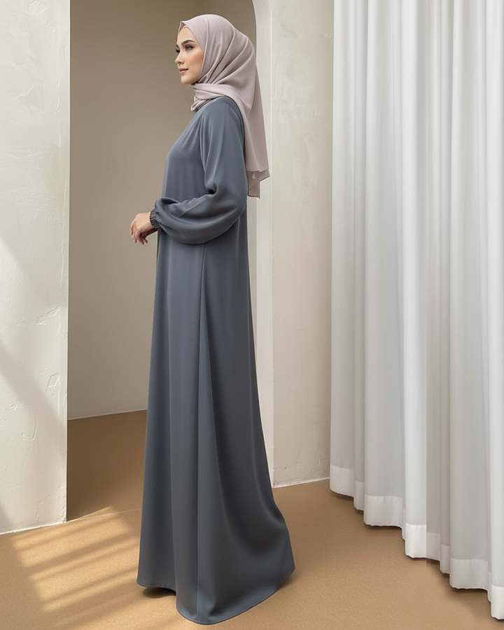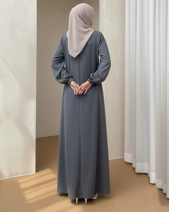 Elegant Plain Steel Grey Abaya with Elastic Cuff Sleeves