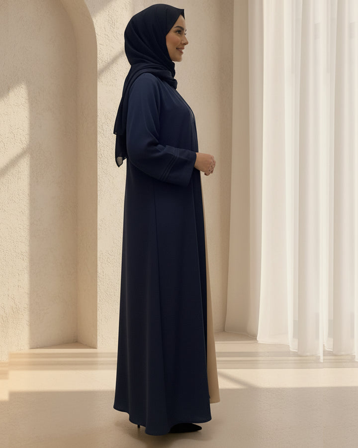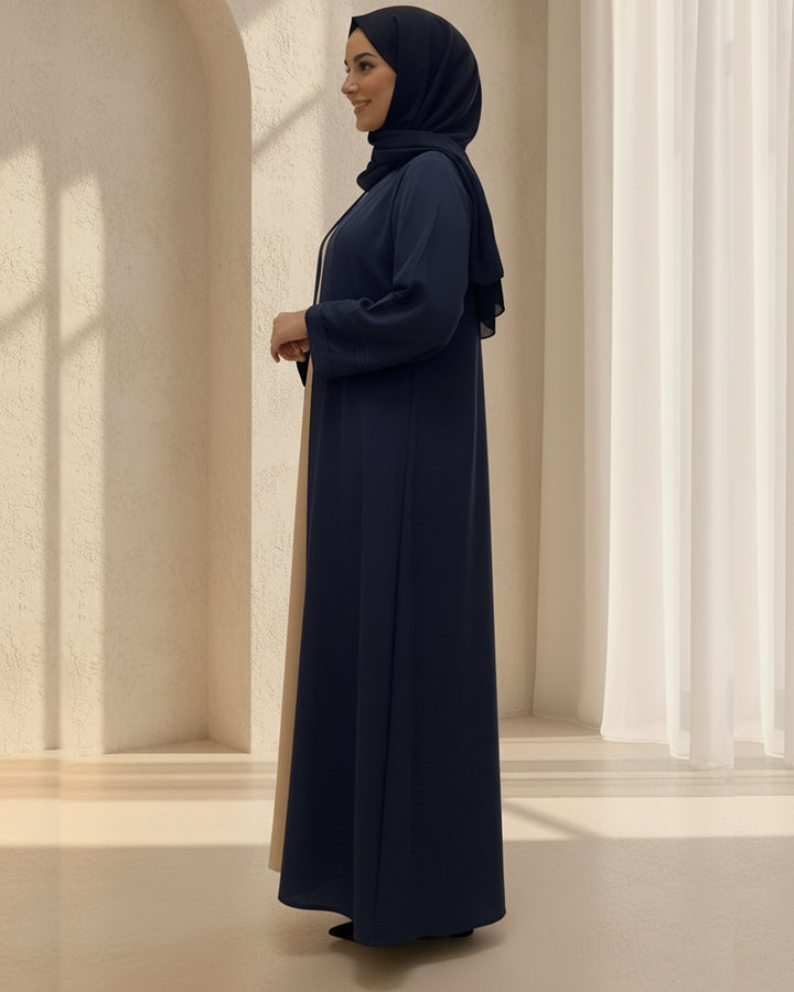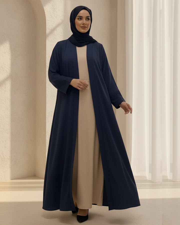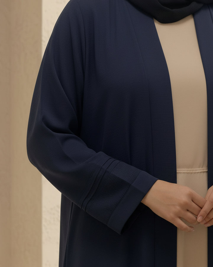 Navy Blue Open Abaya – Zoom Nida Jubah Fabric, Elegant Modest Wear