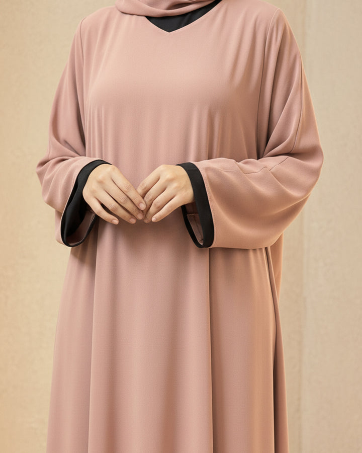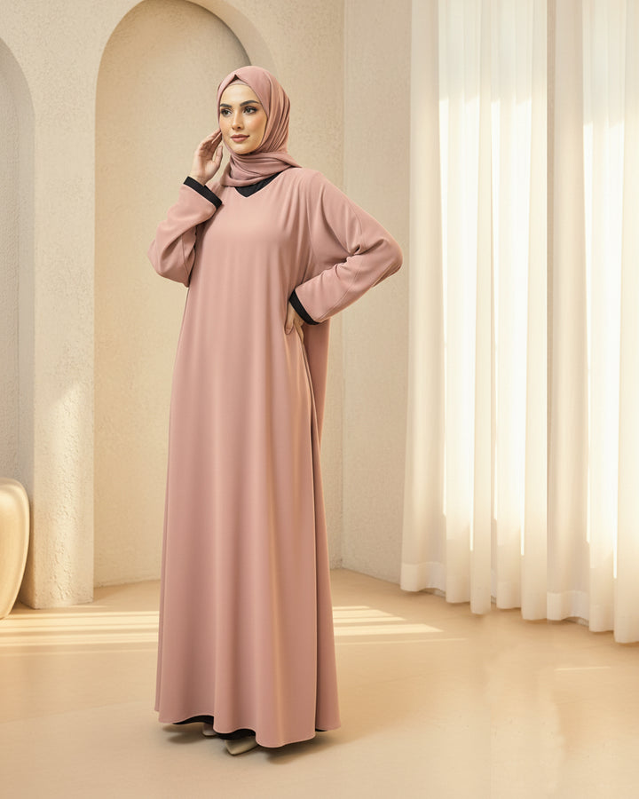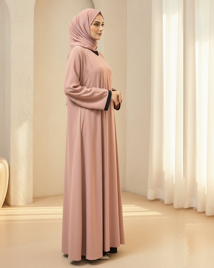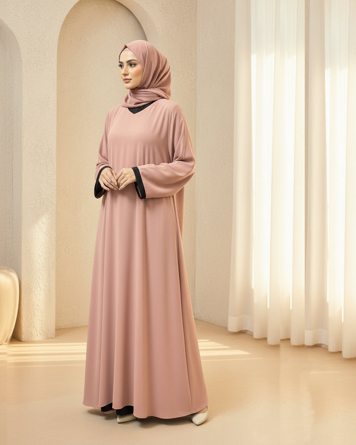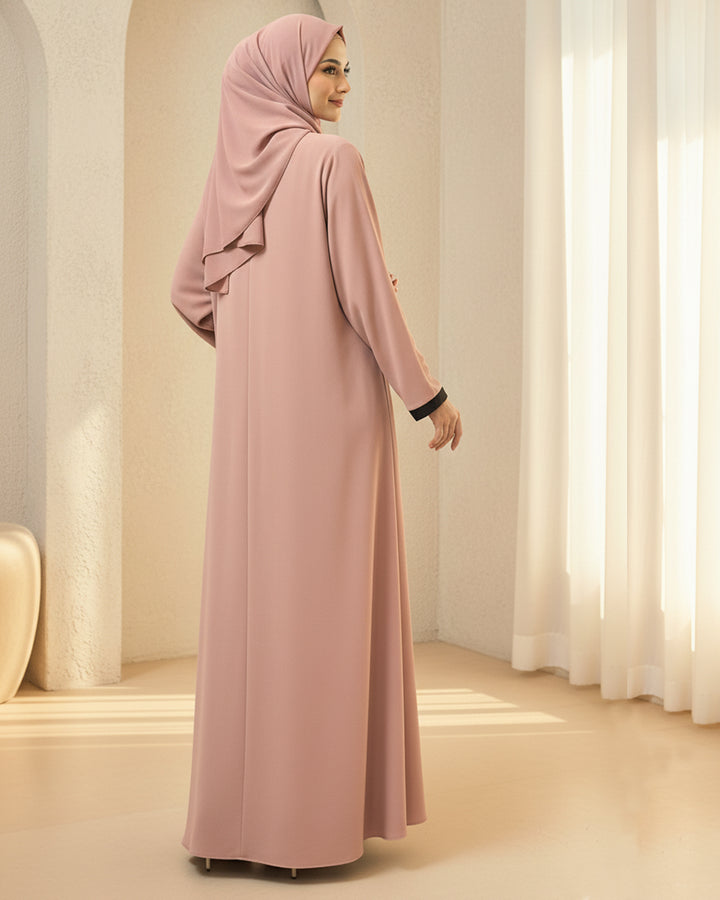 Reversible Dusty Rose Pink Crepe Abaya / Kaftan with Matching Stole – Dual-Sided Elegant Design